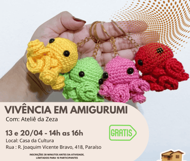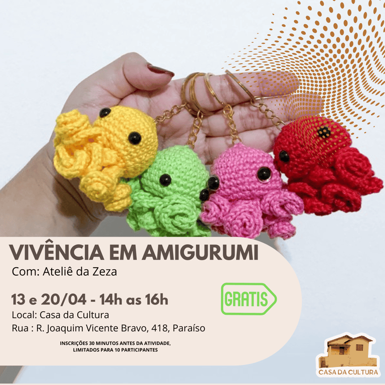 A Casa da Cultura convida você para uma experiência encantadora no mundo dos amigurumis — aquelas pequenas e adoráveis criações feitas em crochê que conquistam corações!